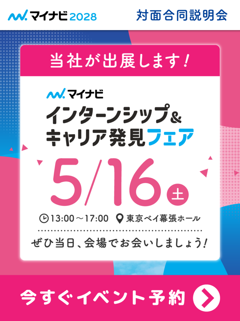 このたび、2026年5月16日(土)TKP東京ベイ幕張ホールにて開催の「マイナビ インターンシップ&キャリア発見フェア」に参加します!